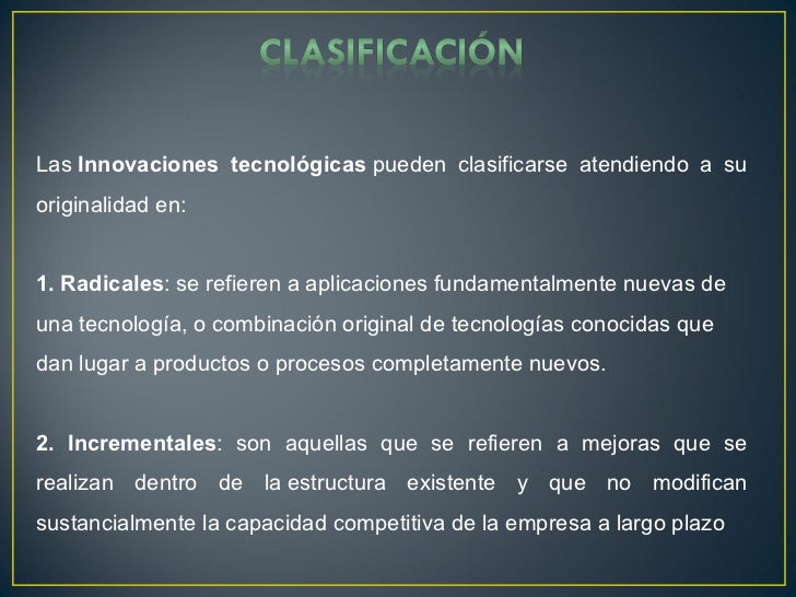 invento- técnica o proceso que posee características novedosas y transformadoras. Sin embargo, algunas invenciones también representan una creación innovadora sin antecedentes en la ciencia o la tecnología que amplían los límites del conocimiento humano.